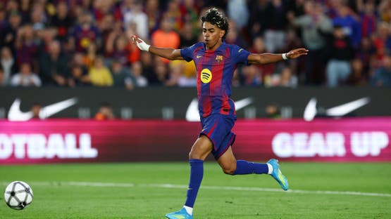 لامين محتفلاً بالهدف قبل دخول الكرة المرمى