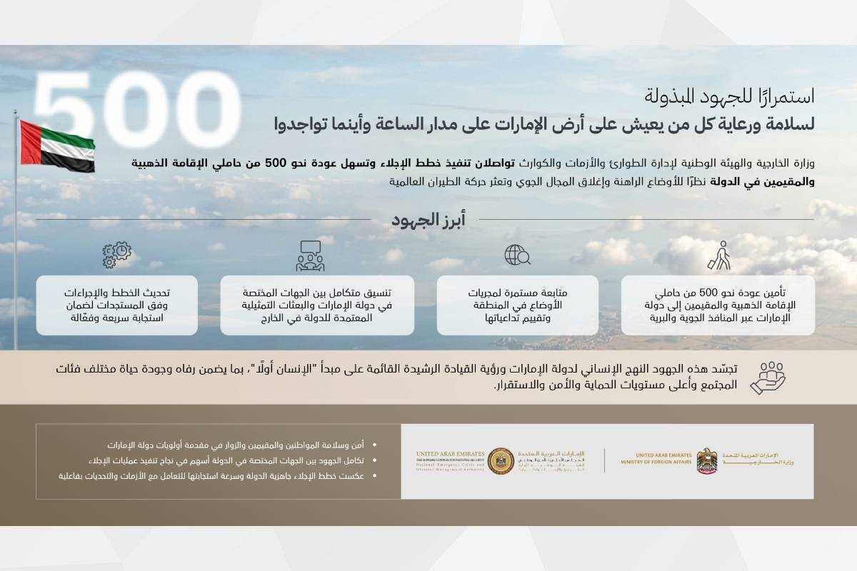 الإمارات.. تسهيل عودة 500 من حاملي الإقامة الذهبية والمقيمين العالقين في الخارج