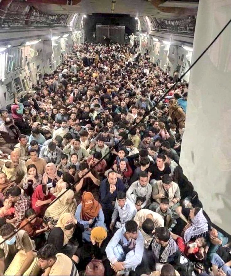 شاهد أول صورة من داخل طائرة إجلاء الأفغان بمطار كابل هرباً من طالبان