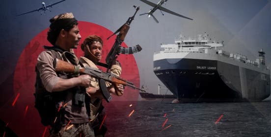 وعقب اندلاع الحرب في غزة، بدأ الحوثيون المدعومون من إيران إطلاق صواريخ ومسيّرات باتجاه إسرائيل، وشنّ هجمات على سفن تجارية يقولون إنها مرتبطة بها قبالة سواحل اليمن مؤكدين أن ذلك يأتي دعما للفلسطينيين.