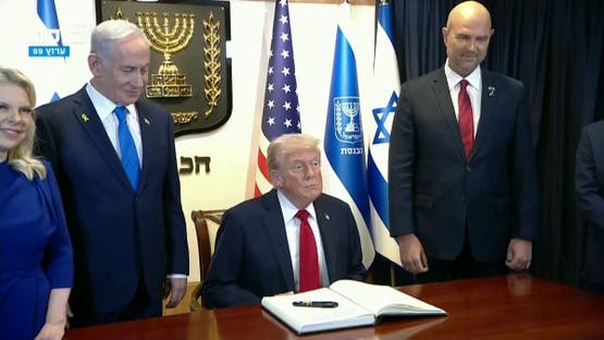 وفي وقت سابق، وصل الرئيس ترامب إلى إسرائيل في زيارة قصيرة، في أعقاب عودة رهائن إسرائيليين أحياء إلى إسرائيل بعد الإفراج عنهم من قطاع غزة. وتأتي الزيارة بعد قليل من إعلان الرئيس الأميركي أن الحرب "انتهت" في غزة خلال توجهه إلى إسرائيل ثم مصر حيث سيترأس "قمة سلام" في مدينة شرم الشيخ، اليوم الاثنين.