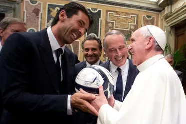 من مواطنَيه ليونيل ميسي ودييغو مارادونا مرورا بالسويدي زلاتان إبراهيموفيتش والإيطالي جانلويجي بوفون، استقبل خورخي بيرغوليو أكبر نجوم كرة القدم في الفاتيكان، موقعا على عشرات القمصان والكرات من الزوايا الأربع للعالم.