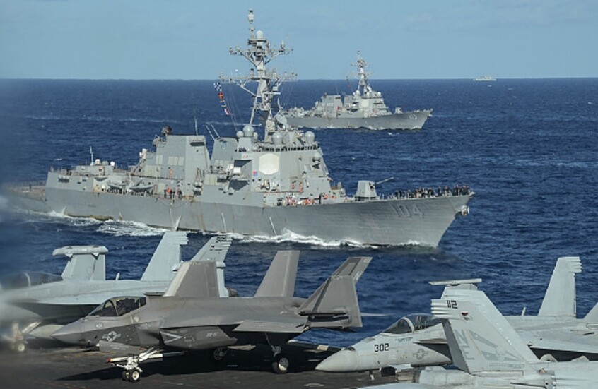 كشفت القوات الأمريكية عن المدمرة البحرية التي تقود الحصار على الموانئ الإيرانية ردا على إغلاق إيران مضيق هرمز.