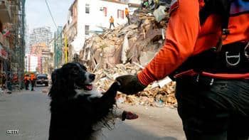 وظهر الكلب وسط عمال الإنقاذ وهو فوق ركام المبنى المدمر، وفي صور أخرى ظهر أحد رجال الإنقاذ وهو يداعب الكلب، وكأنه يشكره على ما قام به من الاستدلال على الجثتين.