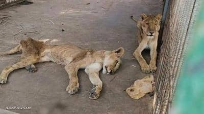 ونشر مستخدمون على مواقع التواصل، صورا لأسود جائعة ومنهكة، كما أظهرت لقطات أخرى الأسود وقد بدت هزيلة للغاية.