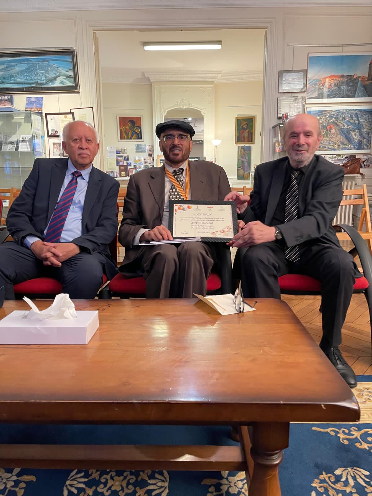 ومن جهه اخرى قام الاستاذ علي المرعبي بتقديم شهادة شكر و تقدير للدكتور جمال سند السويدي نيابة عن كل العرب واتحاد الإخوة والكتاب في مركز ذرا للأبحاث والأبحاث بفرنسا، وقلده ميدالية خاصة باسم "كل العرب". وقام الدكتور جمال سند السويدي بإهداء نسخة من كتابه للأستاذ علي المرعبي.