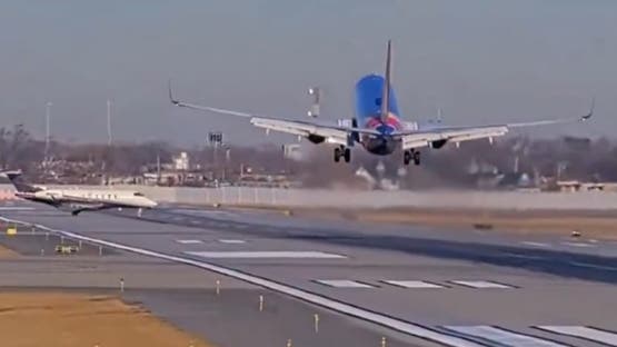 ويظهر مقطع فيديو التقطه المراقبون في المطار، طائرة تابعة لـ"ساوث ويست" تستعد للهبوط على المدرج، بينما كانت الطائرة الخاصة تتحرك أمامها.