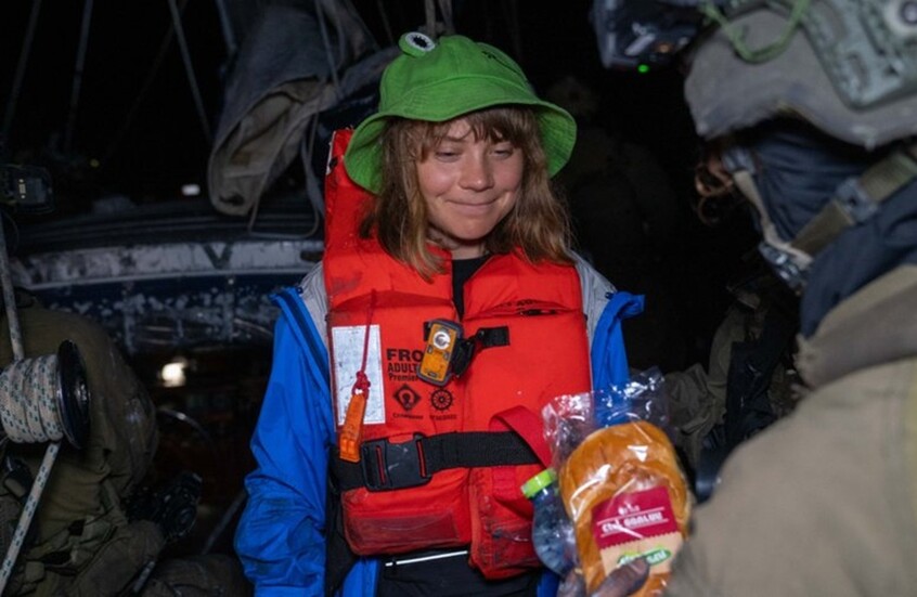 كما نشر صورة للناشطة غريتا ثونبرغ، وكتب: "تتوجه غريتا ثونبرغ حاليًا إلى إسرائيل، وهي آمنة ومعنوياتها جيدة".