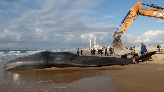 حوت العنبر جثة هامدة قرب شواطئ غزة.. والسبب مجهول