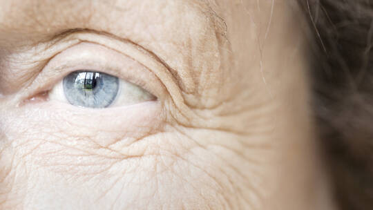 الجانب المعرض للشمس من وجهه متعرج ومبطن بعمق وأكثر قتامة بشكل ملحوظ، لكن الجلد في الجانب الآخر أكثر نعومة ومشدود أكثر.