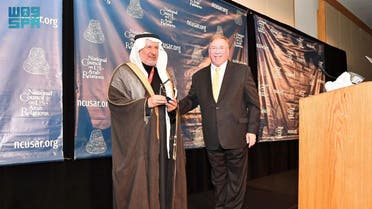 وتسلم الجائزة المشرف العام على المركز الدكتور عبدالله الربيعة من المدير التنفيذي للمجلس الوطني للعلاقات الأميركية العربية ديلانو روزفلت، في العاصمة الأميركية واشنطن .