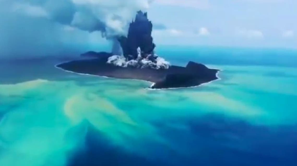 شاهد.. أمواج تسونامي خطيرة بعد ثورة بركان تحت البحر في تونغا