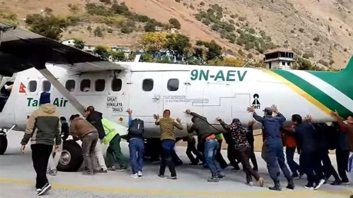 مشهد غريب لم تره من قبل.. فيديو لركاب يدفعون طائرة