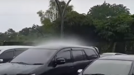 بالفيديو.. أمطار تنهمر على سيارة واحدة دون عشرات السيارات الملاصقة لها