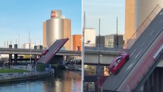لحظات مرعبة عاشتها عائلة بعد انفتاح جسر متحرك وهم داخل سيارتهم (فيديو)