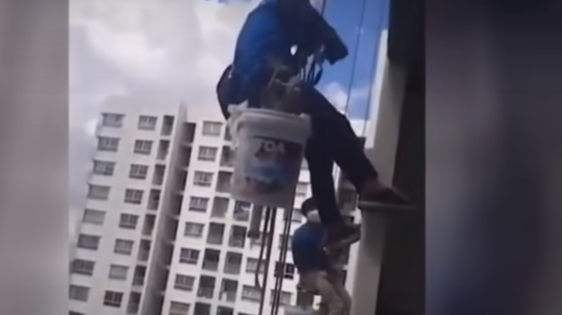 فيديو.. امرأة تقطع حبلاً تعلق به عاملا طلاء بارتفاع شاهق لهذا السبب!