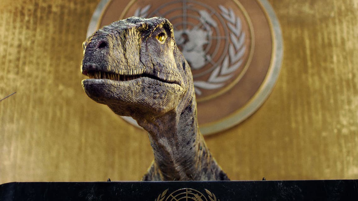 شاهد ديناصوراً يقتحم قاعة الجمعية العامة للأمم المتحدة