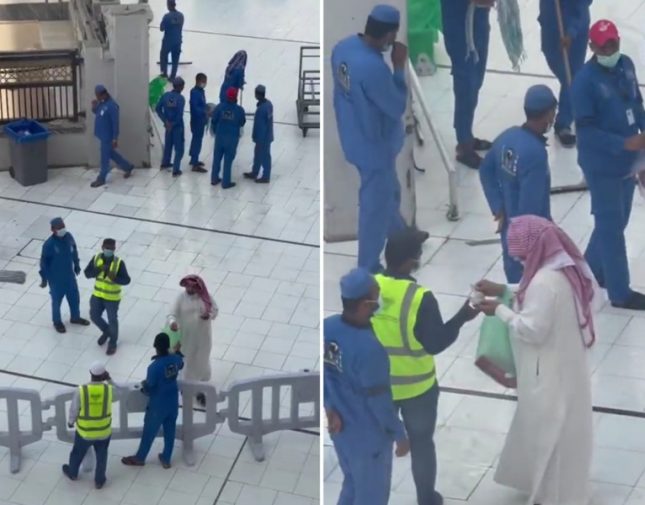 شاهد.. مواطن يوزع مبالغ مالية على العاملين في الحرم المكي