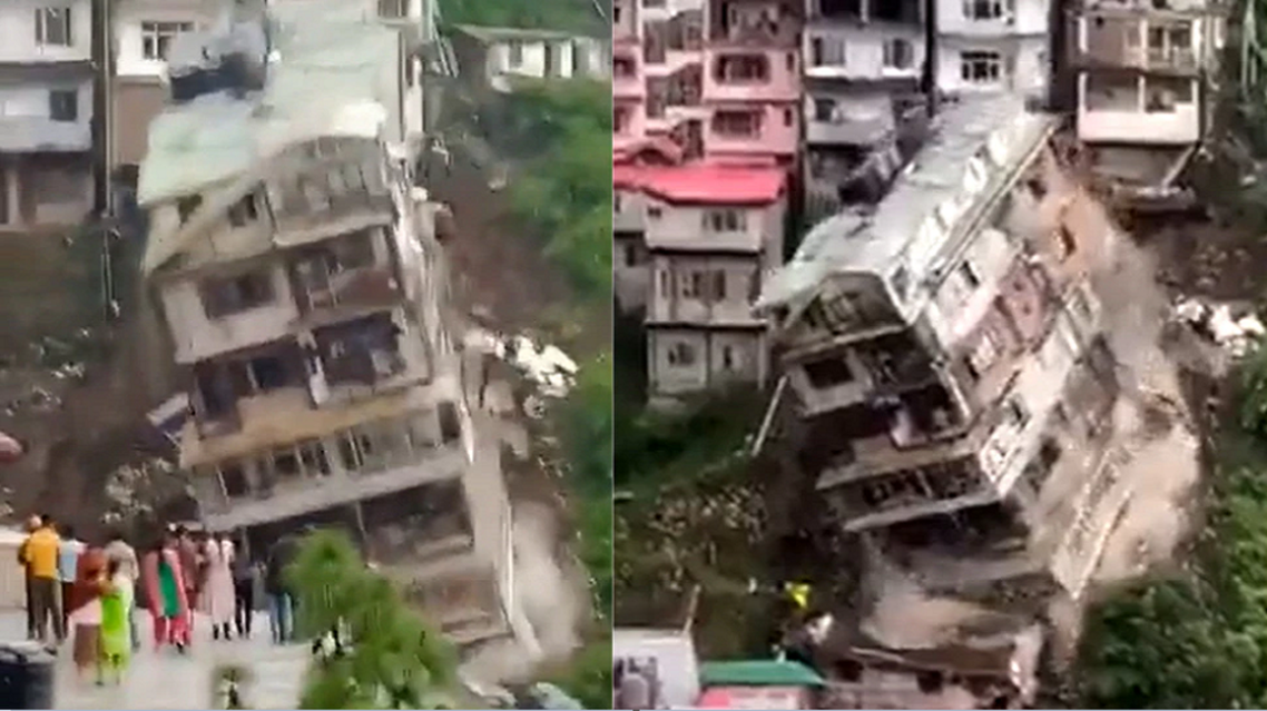 شاهد عمارة تميل وتنهار في الهند وسط صراخ وعويل السكان
