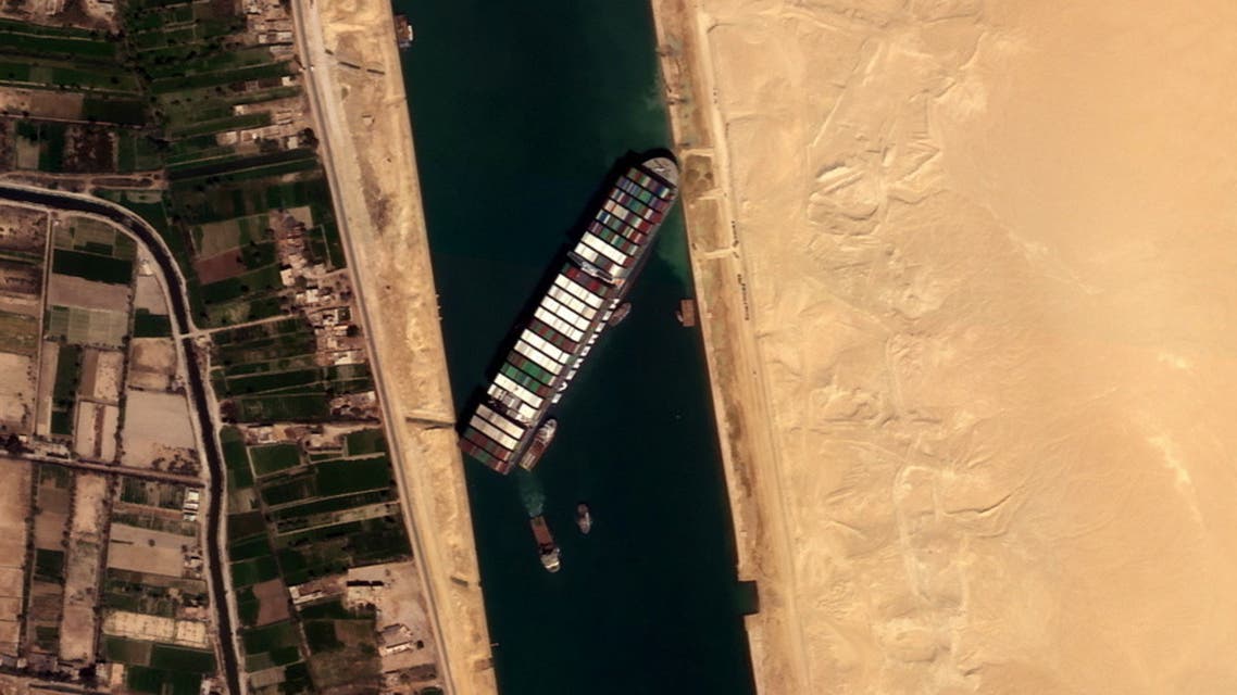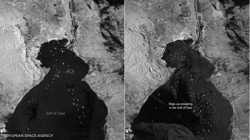صور من الفضاء توضح حجم "أزمة" السفينة في قناة السويس