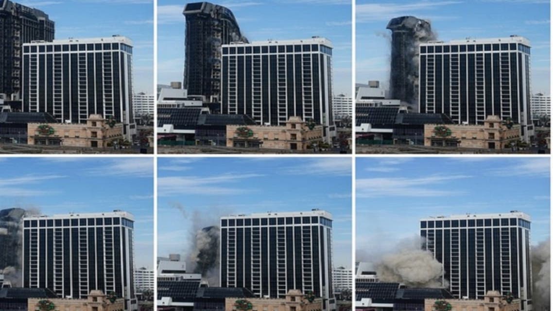 شاهد الفندق الذي بناه ترمب بعامين ينهار بعشرين ثانية