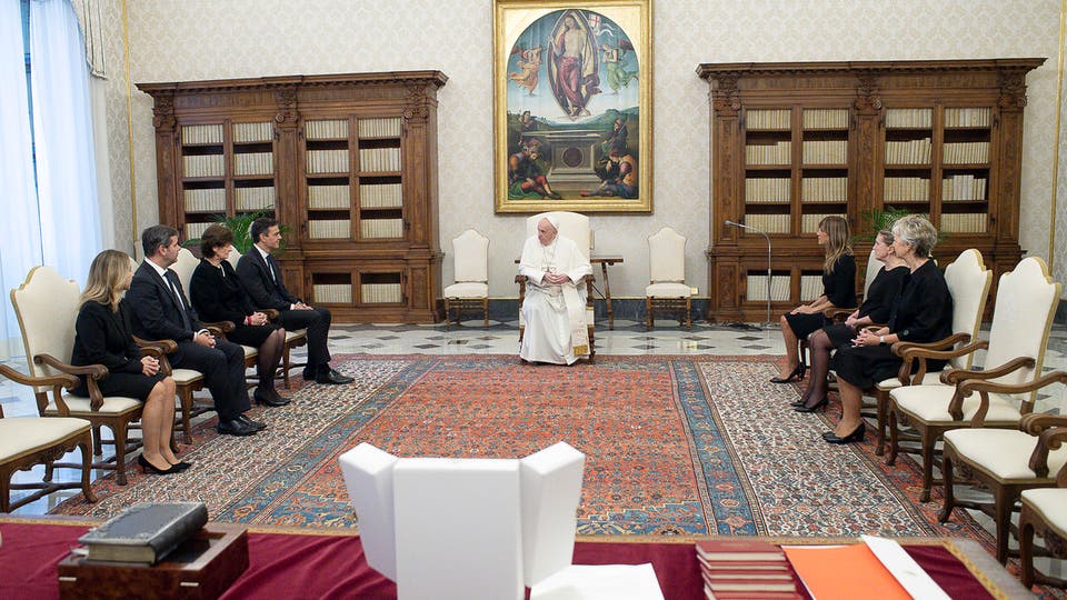 الجميع بلا كمامات.. جدل بعد لقاء البابا برئيس وزراء إسبانيا.. صور