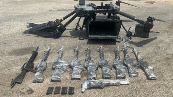 وأشار إلى أن المسيرة كانت تحمل 10 قطع سلاح و6 خزائن ذخيرة، ونشر صورة لتلك المسيرة مع الأسلحة التي كانت تحملها.