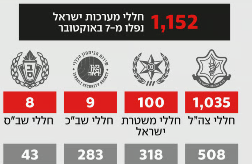 وفي العام الماضي، أضيف 262 قتيلا إلى عدد قتلى القوات الإسرائيلية، معظمهم كانوا من الشباب العزاب في الخدمة النظامية - منهم 43 من أفراد فرق الاستعداد، إلى جانب 100 من الشرطة الإسرائيلية، و9 من الشاباك، و8 من مصلحة السجون الإسرائيلية.