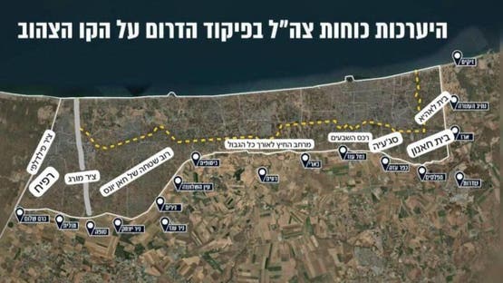 مع انتهاء الانسحاب الأولي للقوات الإسرائيلية من مناطق عدة في غزة، وتدفق آلاف النازحين اليوم الجمعة من جنوب القطاع إلى الشمال، نشر الجيش الإسرائيلي خريطة لمواقع تواجده.